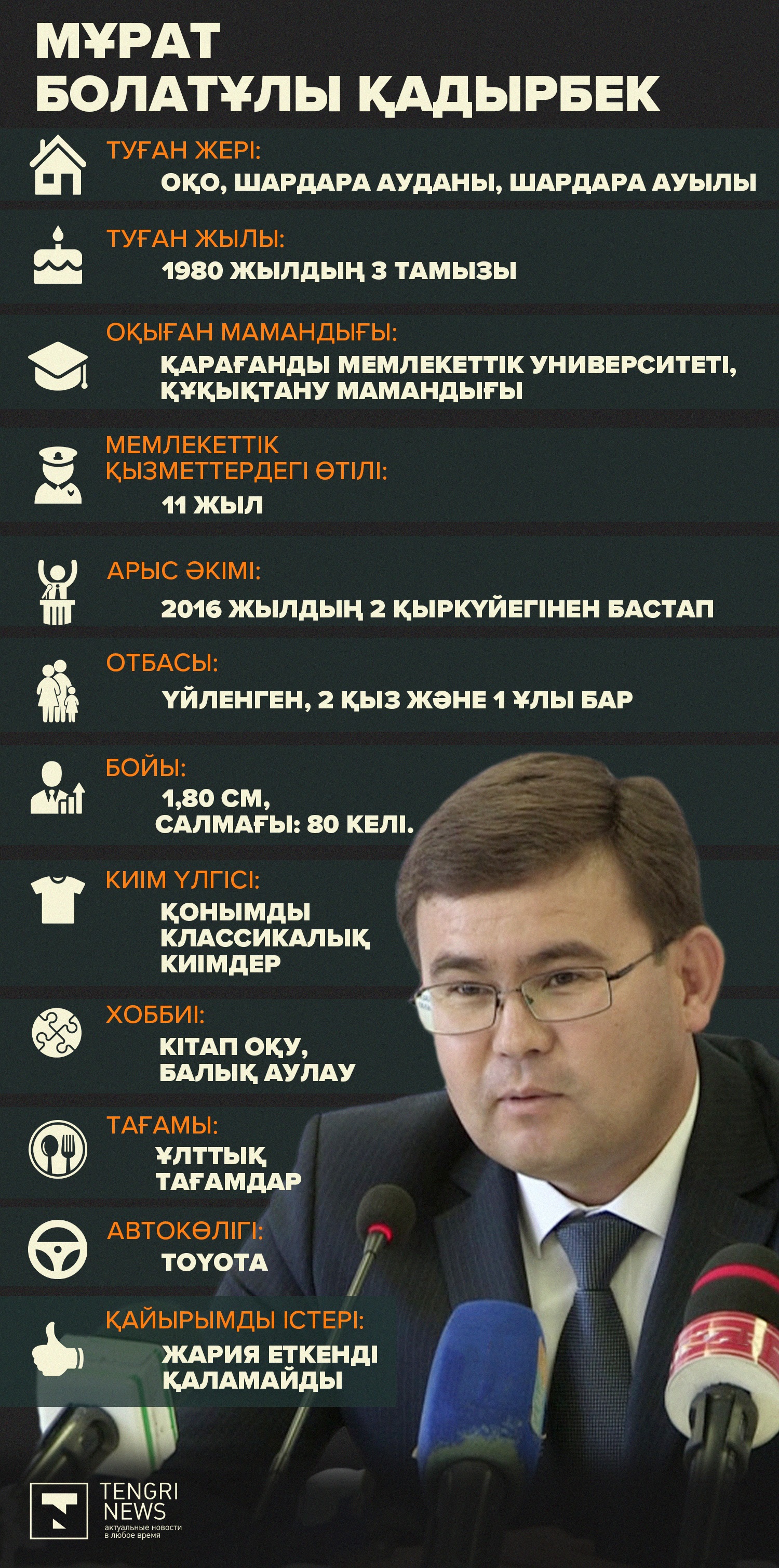 Тengrinews.kz тілшісі Арыс әкімі туралы мәліметтер ұсынады.
