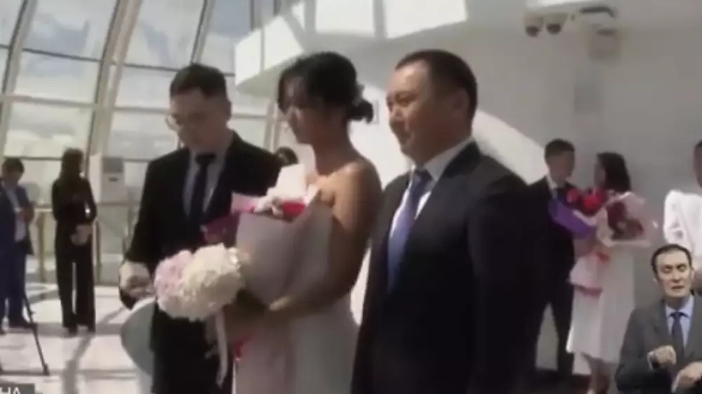 Шесть пар провели совместную свадебную церемонию в Астане Кадр из видео