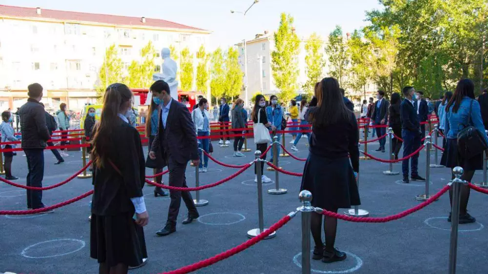Из-за карантина в пунктах сдачи главного школьного экзамена усилили санитарный контроль. Установили дезинфекционные тоннели с ковриками для обеззараживания обуви, на входе каждому школьнику выдают по две медицинские маски и бесконтактно замеряют температуру.