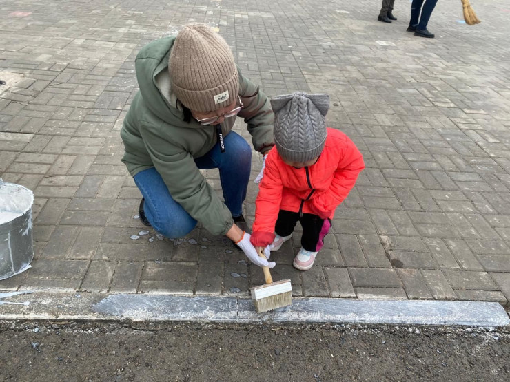 Несмотря на свой юный возраст, 6-летний Алихан пришел помочь своему брату, который учится в 5 классе. Малыш планирует учиться в этой школе и с вечера готовился принять участие в субботнике.