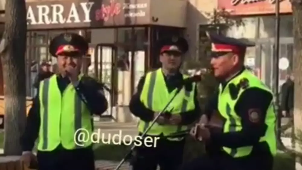 Пользователи Казнета обсуждают вокальные данные полицейских, выступление которых сняли на видео на Арбате в Шымкенте, передает корреспондент Tengrinews.kz.