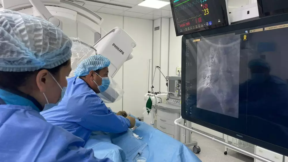 Операцию выполнили главный врач больницы и главный внештатный рентгенхирург города, врач высшей категории Асхар Рахматалиев и рентгенхирург больницы Нуржан Карабаев. Она длилась два часа.