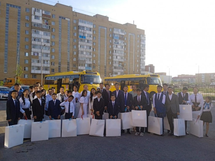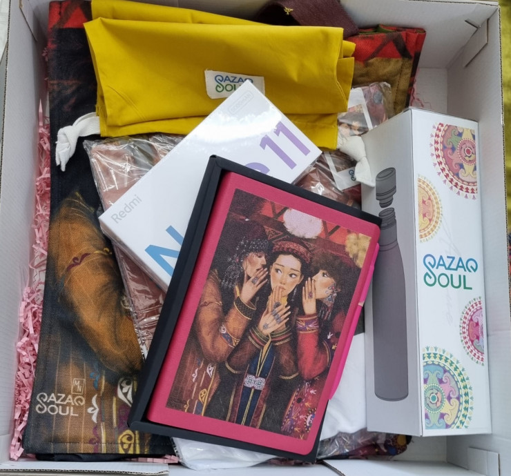 В подарочном наборе от Главы государства был смартфон. Также детям вручили шопер, термобутылку и ежедневник в казахском стиле.