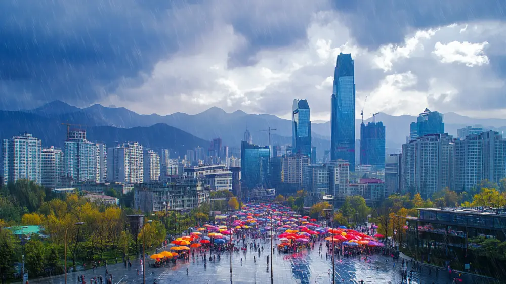 Сильные дожди в Алматы: оперативное предупреждение ДЧС Изображение сгенерировано при помощи нейросети Midjourney