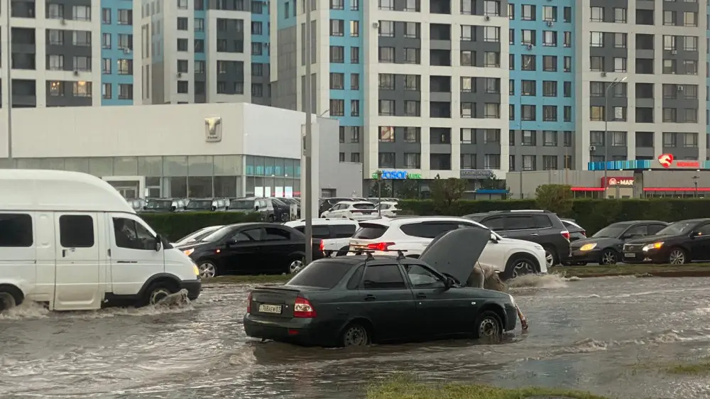 Обрушившийся на Астану сильный дождь затопил несколько улиц левобережья столицы, передает корреспондент Tengrinews.kz.