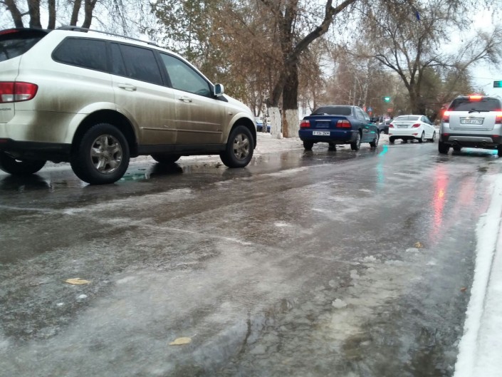 Костанайцев застал врасплох гололед, передает корреспондент Tengrinews.kz. В городе затруднено передвижение транспорта, дети не смогли доехать до школы, а взрослые опаздывают на работу.
