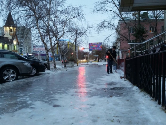 Резкое потепление превратило улицы Костаная в сплошной  каток. Автобусы не вышли на линии, автомобилей на улицах стало в разы меньше. Как сообщает городской акимат, 120 рабочих и 15 единиц техники очищают дороги с 4 утра: засыпают проезжие части песком и солью, но этого явно мало. Общественный транспорт начнет работу ориентировочно только после 10 утра. Этим пользуются таксисты, которые заламывают цены на свои услуги.