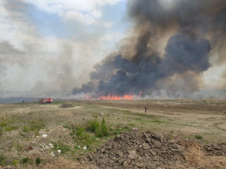 В социальных сетях распространяются фото и видео с места пожара. Дымом затянуло некоторые районы города. Как стало известно, сегодня в ДЧС поступило сообщение о возгорании камыша и травы в районе улицы Мичурина. Была угроза распространения огня на частный сектор.