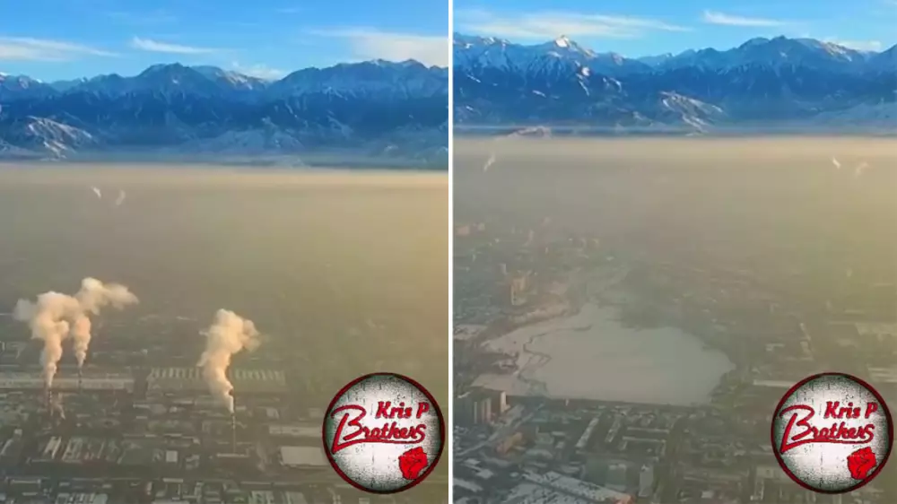 Один из пассажиров самолета во время приземления в международный аэропорт Алматы снял на видео вид город из своего иллюминатора. На кадрах в одной части окна видно чистое и ясное голубое небо, в другой - наполненный дымом город. Постепенно самолет утопает в этом "грязном бассейне" из смога. Отмечается, что ролик был снят 5 января этого года.