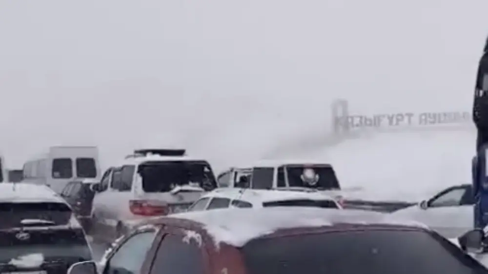 Как сообщили в МВД, в Туркестанской области из-за резкого похолодания и сильного снегопада возникли сложности с движением транспорта, что создало значительные неудобства для водителей.