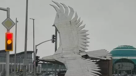 Символ проекта "Рухани жаңғыру" - парящий орел, который был установлен возле аэропорта Астаны, упал из-за сильного ветра. Снимки лежащей на боку конструкции появились в соцсетях, передает корреспондент Tengrinews.kz.