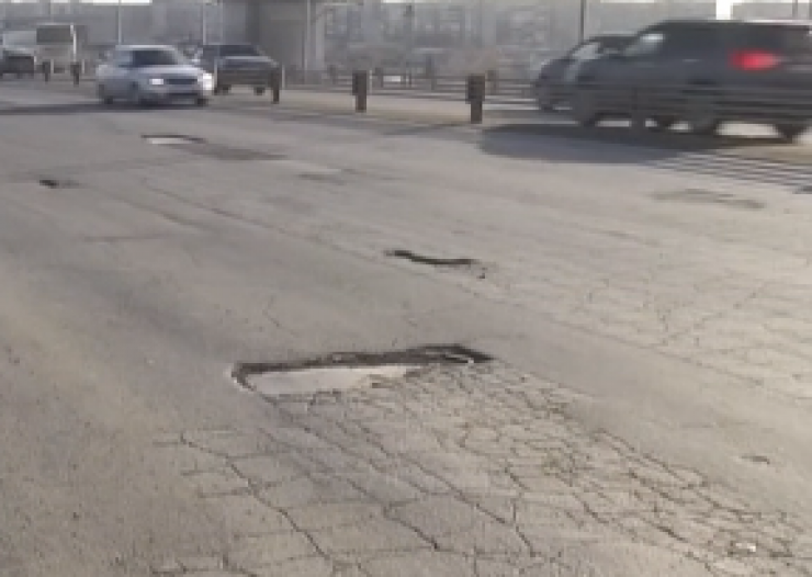 По всему пути выбоины. До самой металлической конструкции. Машинам приходится рискованно лавировать и объезжать препятствия.