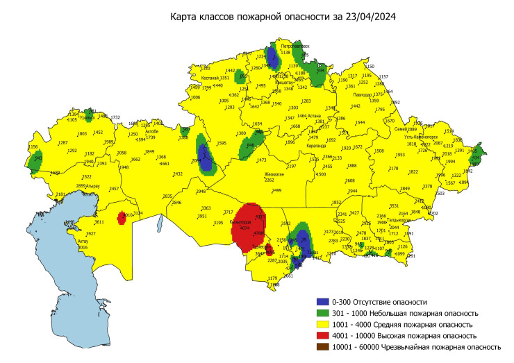 В центре, на востоке Кызылординской области, в Кызылорде, а также на северо-востоке Мангистауской области ожидается высокая пожарная опасность.