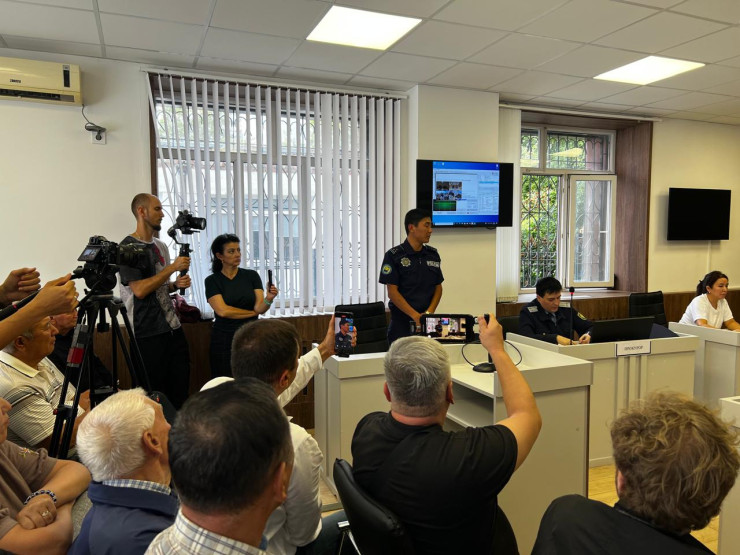 В суде также показали кадры, где акиму развязали руки, связанные ремнем одного из полицейских.