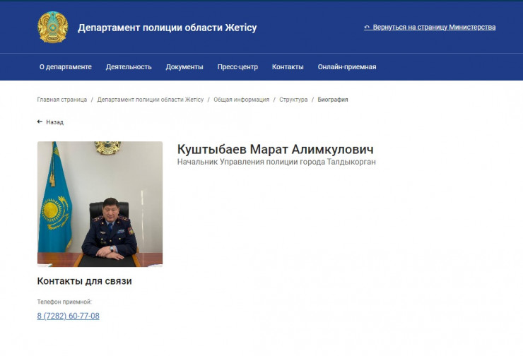 Также известно, что в декабре 2021 года полковник полиции Марат Куштыбаев занимал должность начальника УП Илийского района Алматинской области. Видео, где Куштыбаев обращается к казахстанцам в преддверии новогодних праздников, опубликовано на странице ДП области в Facebook.