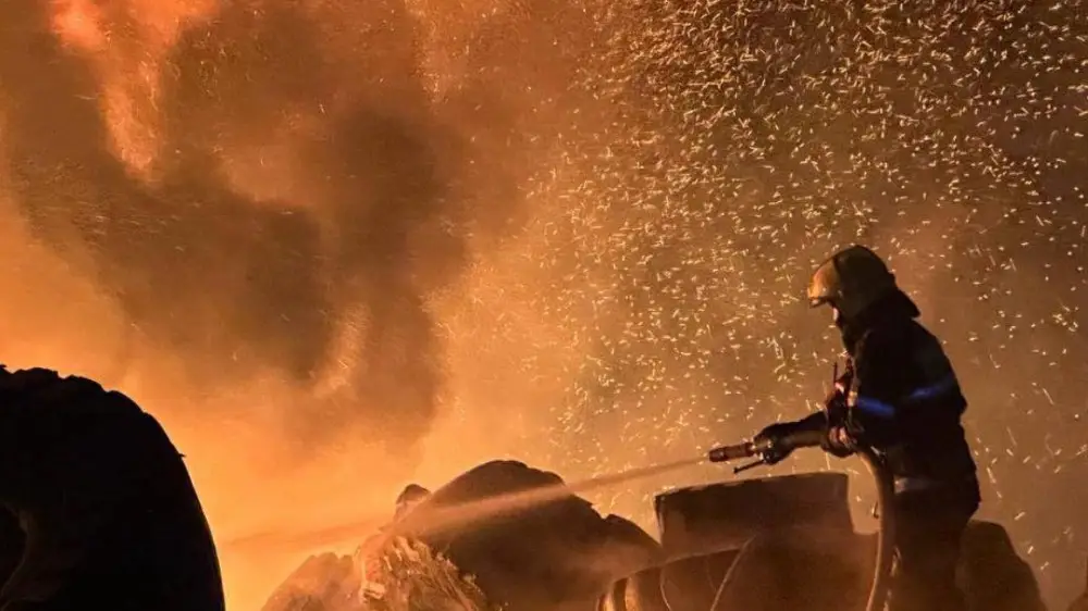 В Астане в районе Сарыарка произошло возгорание склада с покрышками. Площадь пожара составила около 1000 квадратных метров, передает Tengrinews.kz.