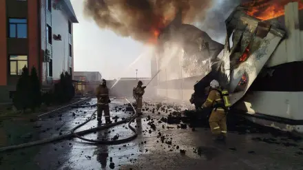 На месте пожара работают специалисты исследовательской испытательной пожарной лаборатории и отдела дознания ДЧС Алматинской области.