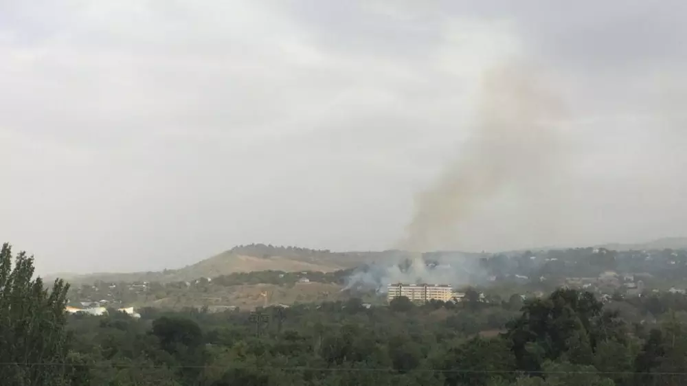 Западный склон горы на Восточной объездной дороге ниже улицы Толе би загорелся в Алматы, передает корреспондент Tengrinews.kz.
