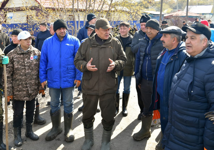 В рамках акции "Біз біргеміз" проводятся работы по ликвидации последствий паводка, расчистка завалов и мусора, очистка территорий, побелка и посадка деревьев, восстановление поврежденного имущества, а именно устройство заборов и других строений.