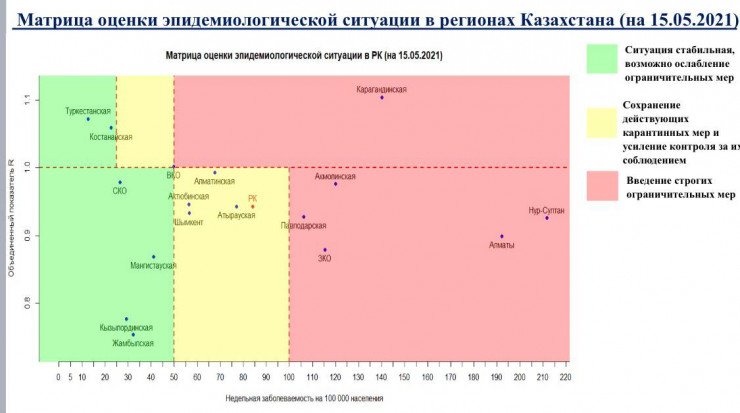 Северо-Казахстанская область перешла "зеленую" зону по коронавирусу, передает корреспондент Tengrinews.kz. Об этом свидетельствует матрица оценки эпидемиологической ситуации в регионах Казахстана на 15 мая 2021 года.