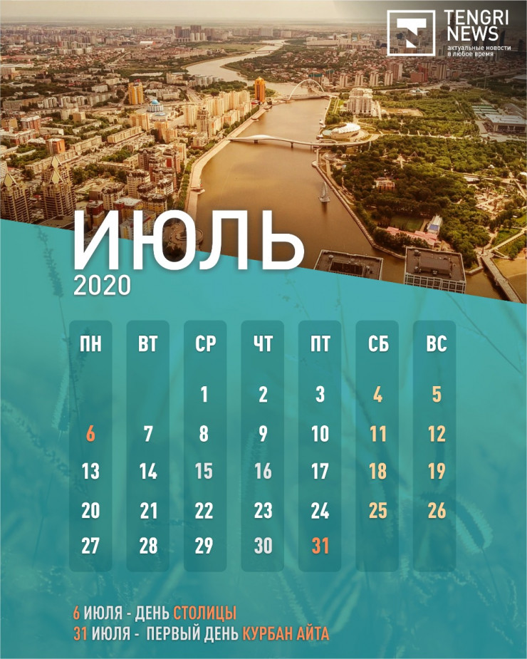 В этом году на июль приходится 21 рабочий день и целых 10 выходных. Корреспондент Tengrinews.kz рассказывает, как казахстанцы отдохнут в этом месяце.