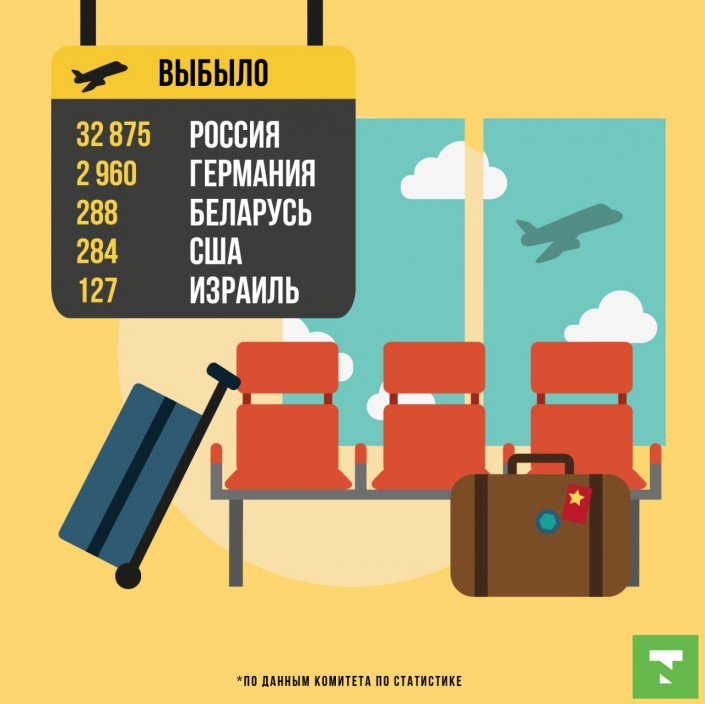 По данным комитета, за 12 месяцев 2017 года из Казахстана выбыло 37 704 человека, при этом 35 680 человек из них - граждане РК. Из общего количества выбывших уехало в Россию 87 процентов, или 32 875 человек. Также люди уезжали в Германию - 2 960 человек, Беларусь - 288 человек, США - 284 человека и Израиль - 127 человек.