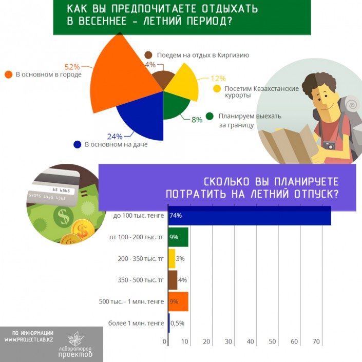 Агентство маркетинговых исследований "Лаборатория проектов" попыталось выяснить, сколько казахстанцы планируют потратить на летний отпуск, передает корреспондент Tengrinews.kz.