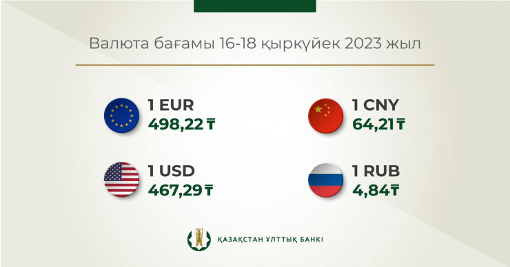 Официальные курсы валют на выходные составили: доллар - 467,29 тенге, евро - 498,22 тенге, рубль 4,84 тенге.