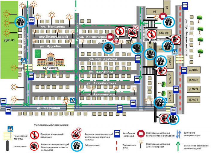 "Прокуратура ставит своей целью свести число преступлений в отношении несовершеннолетних к абсолютному минимуму. Чтобы обезопасить школьников, разработаны карты безопасных маршрутов до учебных заведений. На них будут в схематическом виде изображены территория школы и прилегающие районы. Там же отмечены наиболее опасные для ребенка места, которых необходимо, при возможности, избегать. В категорию таковых могут попасть пивбары, пустыри, магазины, где продается спиртное, плохо освещенные участки, гаражи - все те зоны и объекты, где ребенка могут подстерегать злоумышленники. В декабре во всех школах города уже проведены тематические родительские собрания, а представители учебных организаций совместно с полицейскими составили общие планы безопасных маршрутов у школ. Карты, которые составили в школах, будут дополняться с учетом передвижений каждого ребенка. Для удобства такие карты вклеиваются в дневники школьников", - рассказали в прокуратуре ВКО.