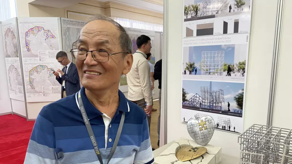 В прошлом году Сакен Нарынов показал эскизы памятников январским событиям в Алматы. Один из его проектов был выполнен в виде металлического куба высотой и шириной 4 метра.
