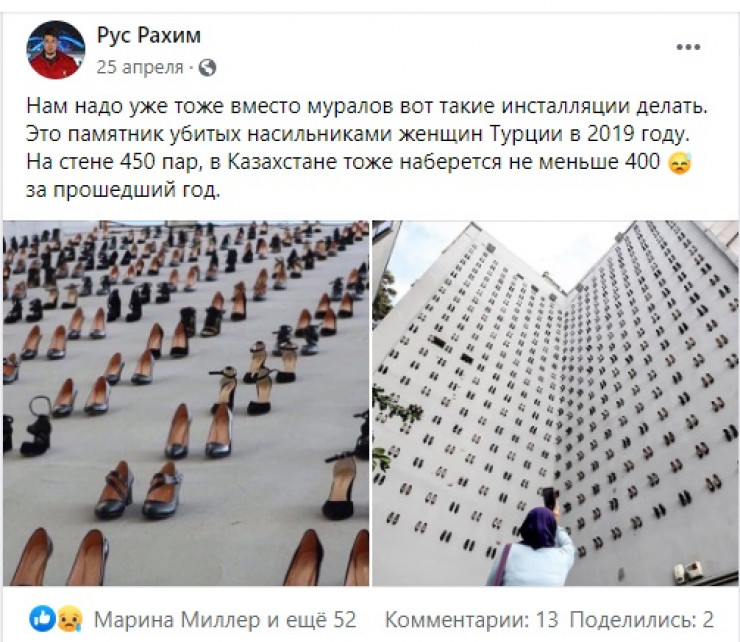 "Иманды болсын... В последнее время он очень активно, со всей душой работал в рабочей группе по проекту закона о противодействии бытовому насилию... жақсы адам еді. Арты қайырлы болсын", - сообщает Эльвира Азимова.