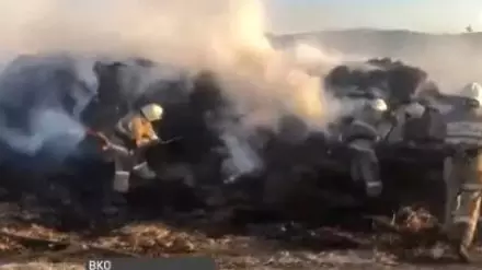 Скот может остаться без еды зимой из-за поджогов сена в ВКО Скриншот с видео телеканала "Астана".