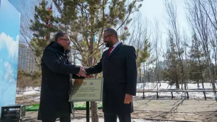На презентации сквера, названного в честь королевы Елизаветы II, присутствовал министр иностранных дел Великобритании Джеймс Клеверли. Он сегодня прибыл в столицу Казахстана.