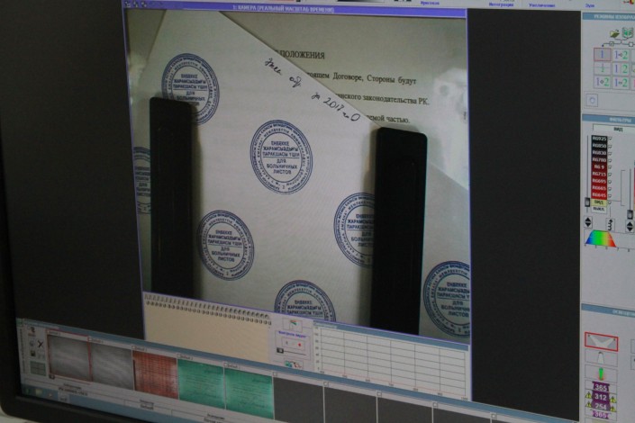 "Для каждого слоя применяем свой цвет, и вот сейчас можно заметить, что оттиски не идентичны. Это только маленькая составляющая видеоспектрального компаратора, который придумали англичане. Могли бы, конечно, казахи придумать, но производство не налажено. Беларусы, например, срисовали его и сами делают для себя", - отмечает эксперт.