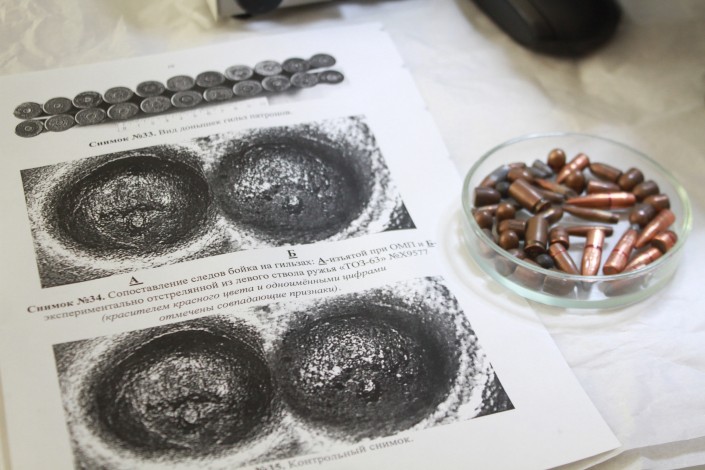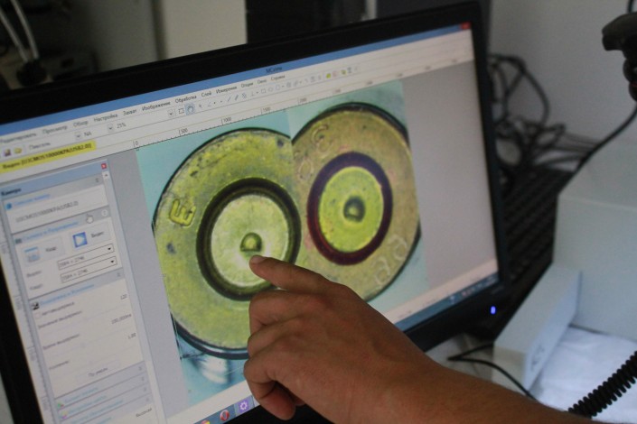 "Криминал на месте не стоит. Любое преступление с применением огнестрельного оружия предполагает применение баллистической экспертизы. Вот, например, гильза, отстреленная на месте происшествия. Если у нас есть ствол, с которого предполагаемый преступник произвел выстрел, мы отстреливаем аналогичный патрон с него же и потом сравниваем его здесь", - рассказал эксперт-баллистик.