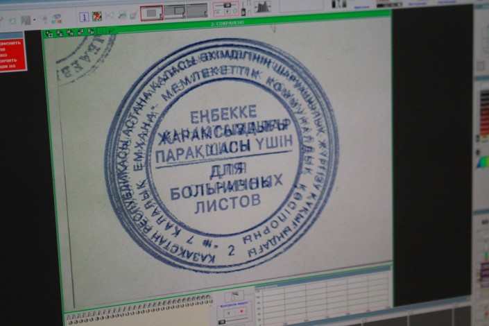 "Больничные покупаются на алматинской фабрике. А сам оттиск делается с оригинал-макета. Его хорошо и красиво копируют, обрабатывают на компьютере, дорисовывают символы и дома делают", - сетует он.
