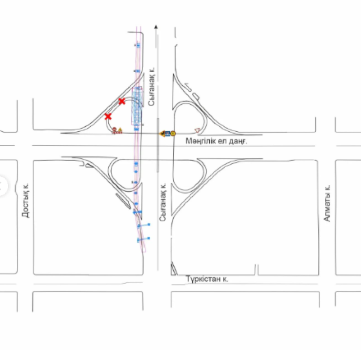 - по правостороннему съезду с проспекта Мангилик Ел на улицу Сыганак в сторону улицы Туркестан.