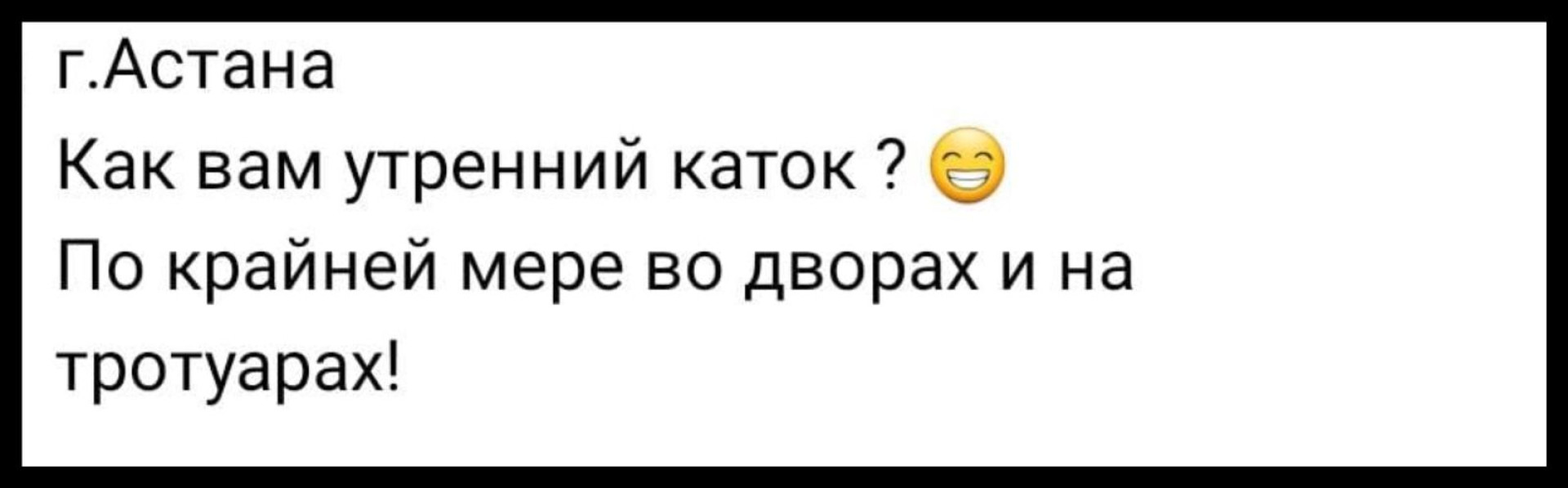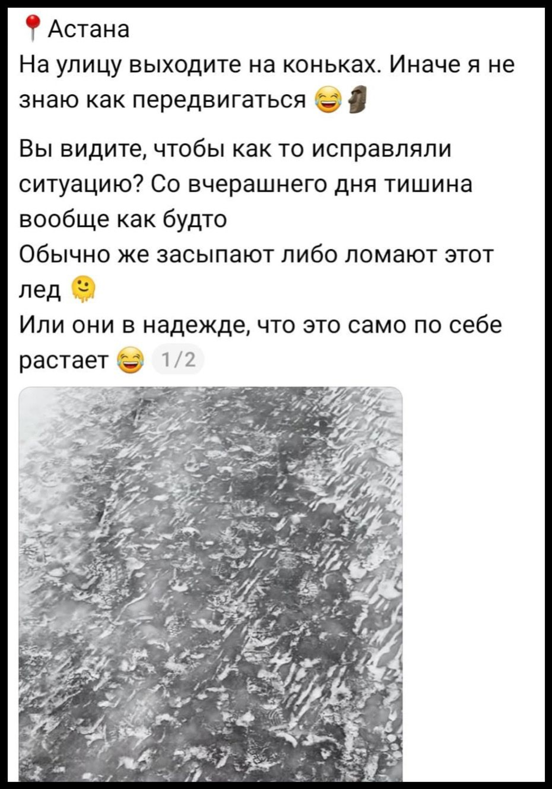 В Астане сейчас +2 градуса. Многие жители опасаются, что после таяния снега город может превратиться в сплошной каток. Накануне некоторые астанчане уже жаловались на аналогичную ситуацию, подробнее – на Tengrinews.kz.