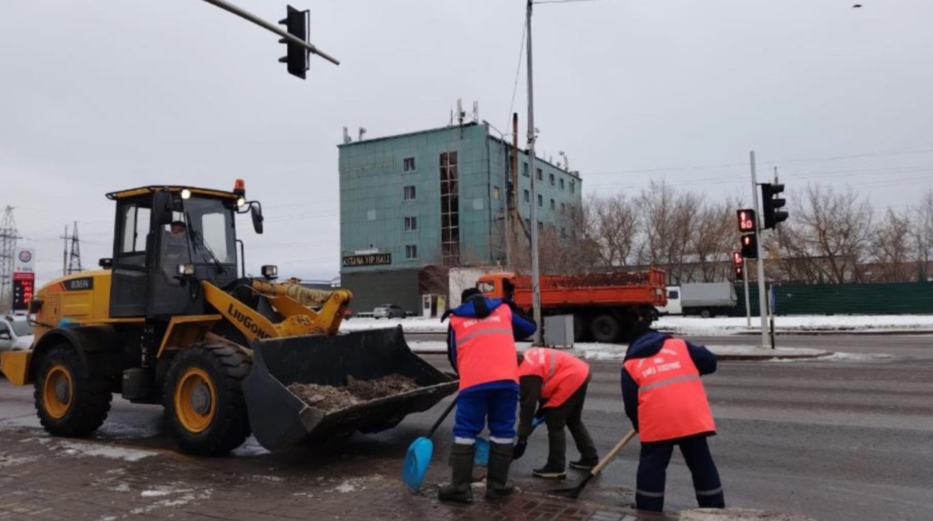 "За минувшую ночь коммунальные службы вывезли из столицы 18 540 кубометров снега. Особое внимание уделяется противогололедным мероприятиям. Для безопасного передвижения горожан дороги и тротуары посыпаются технической солью", – сообщили в акимате.