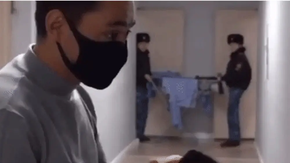 Видео было снято оператором телеканала "Хабар 24". В кадре находится журналист Жасын Биркенов, но вирусными в интернете видеокадры стали из-за происходящего на заднем плане, где двое человек в форме переносят сушилку для белья с одеждой. При виде камеры герои замешкались и решили вернуться назад.