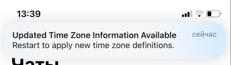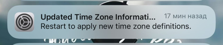 Если пройти в раздел "Дата в время" в настройках вашего устройства, можно увидеть сообщение о том, что на ваш гаджет отправлены обновленные данные о часовых поясах. Они будут установлены при следующей перезагрузке iPhone.