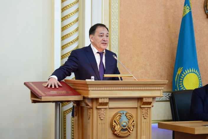 Премьер-министр Бакытжан Сагинтаев и первый заместитель руководителя Администрации Президента Марат Тажин прибыли с рабочей поездкой в Актау, где приняли участие во внеочередной сессии областного маслихата.