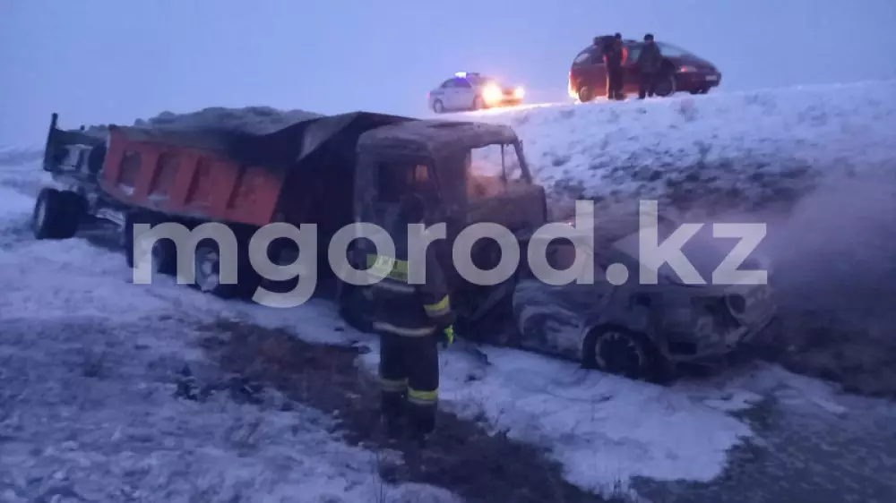 "После столкновения машина загорелась. В результате ДТП погибли пять человек. По данному факту начато досудебное расследование по статье 345 УК РК "Нарушение ПДД", - сообщили в пресс-службе Департамента полиции ЗКО.