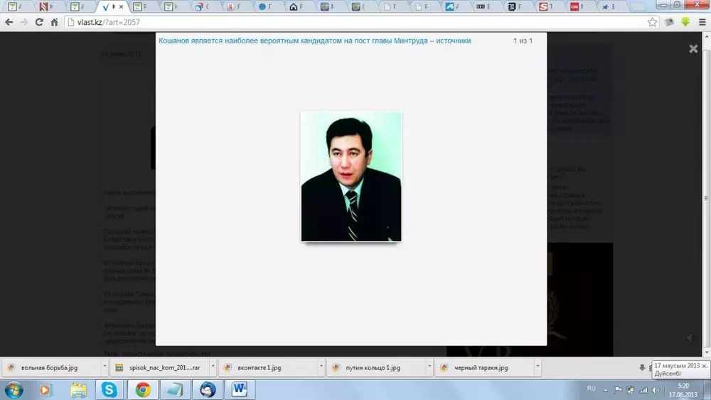 Наиболее вероятным кандидатом на пост министра труда и социальной защиты населения является нынешний руководитель канцелярии премьер-министра Ерлан Кошанов. Об этом журналу Vласть сообщил источник в администрации президента.