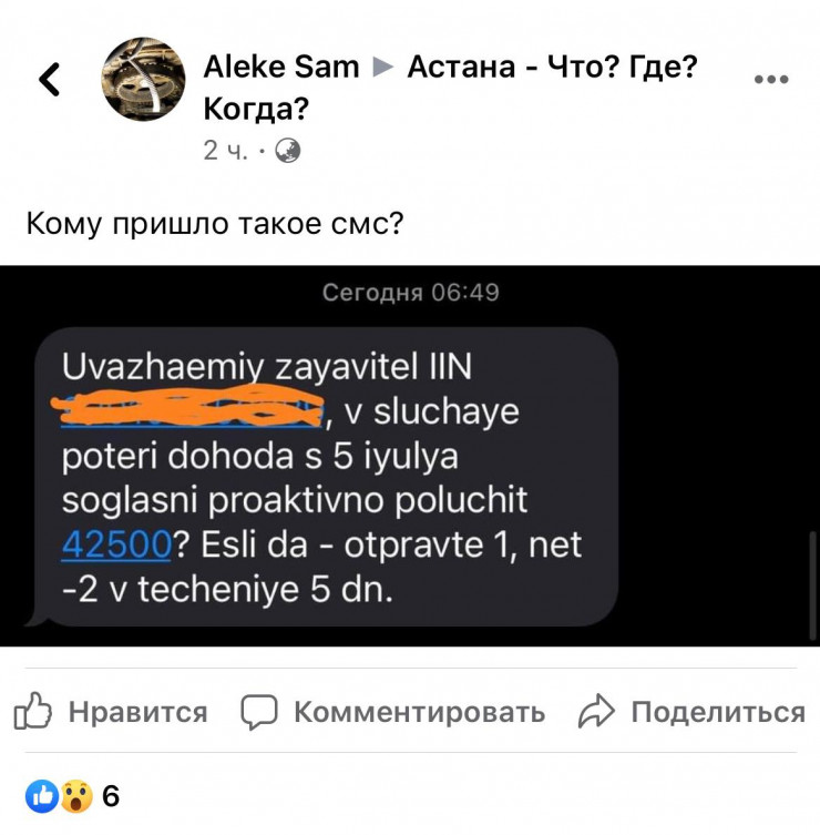 Публикации о начислении 42 500 казахстанцы выложили в Facebook-группе Астана - Что? Где? Когда?.