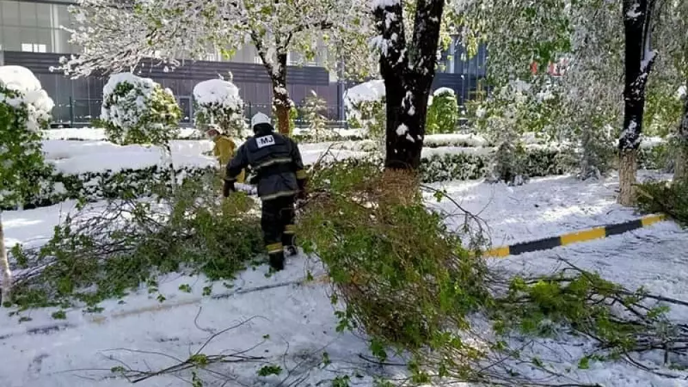 9 апреля южные города Казахстана и соседних центральноазиатских республик, в которых температура воздуха уже поднималась до плюс 25, завалило снегом. Пользователи социальных сетей делятся видео и фотографиями зеленых растений, покрытых белом полотном, передает корреспондент Tengrinews.kz.