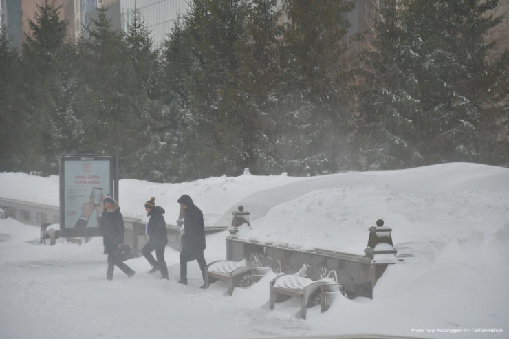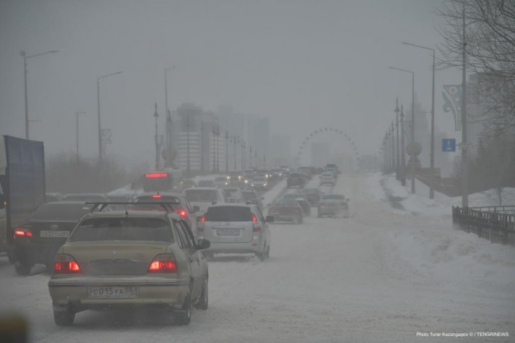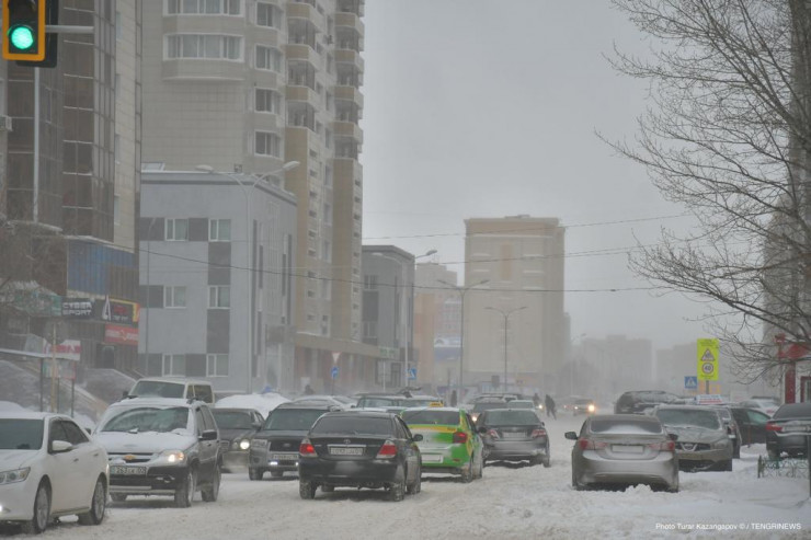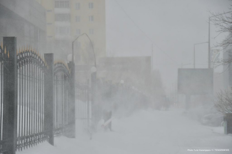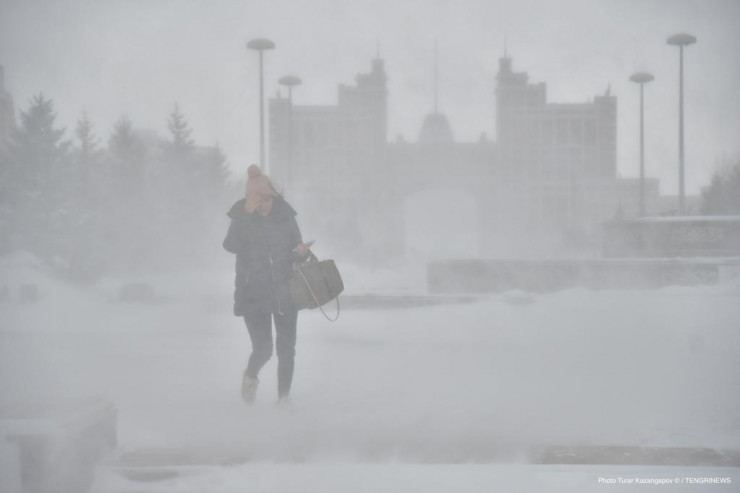 В Нур-Султане объявлено штормовое предупреждение. Занятия в школах отменили, а жителей попросили выполнять требования полиции. Фотограф Tengrinews.kz показал, как выглядит город в центре снежной бури.