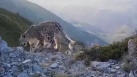 Снежного барса сняли на видео в горах Казахстана Кадр из видео