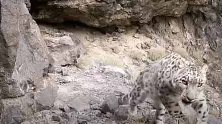 Снежный барс "позировал" на камеру в Алматинской области Кадр из видео