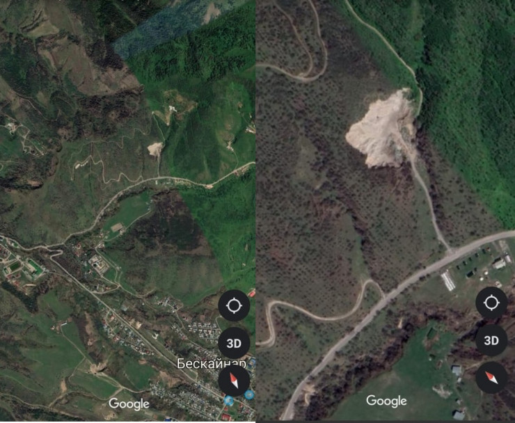 "Это экологическое преступление. Варвары снесли полгоры. Посмотрите на эту "рану" с высоты птичьего полета. Участок находится по дороге на Табаган, в сторону Лесной сказки. Это ведь очень опасно, она вся может сползти. В настоящее время потенциальный хозяин пригласил геодезиста, чтобы узнать, частично его участок находится в таком состоянии или нет. Несколько лет он сюда не приезжал, а когда вернулся, обнаружил вот такое ужасное зрелище. По его словам, раньше здесь были сады, малинник", - добавила экоактивистка.